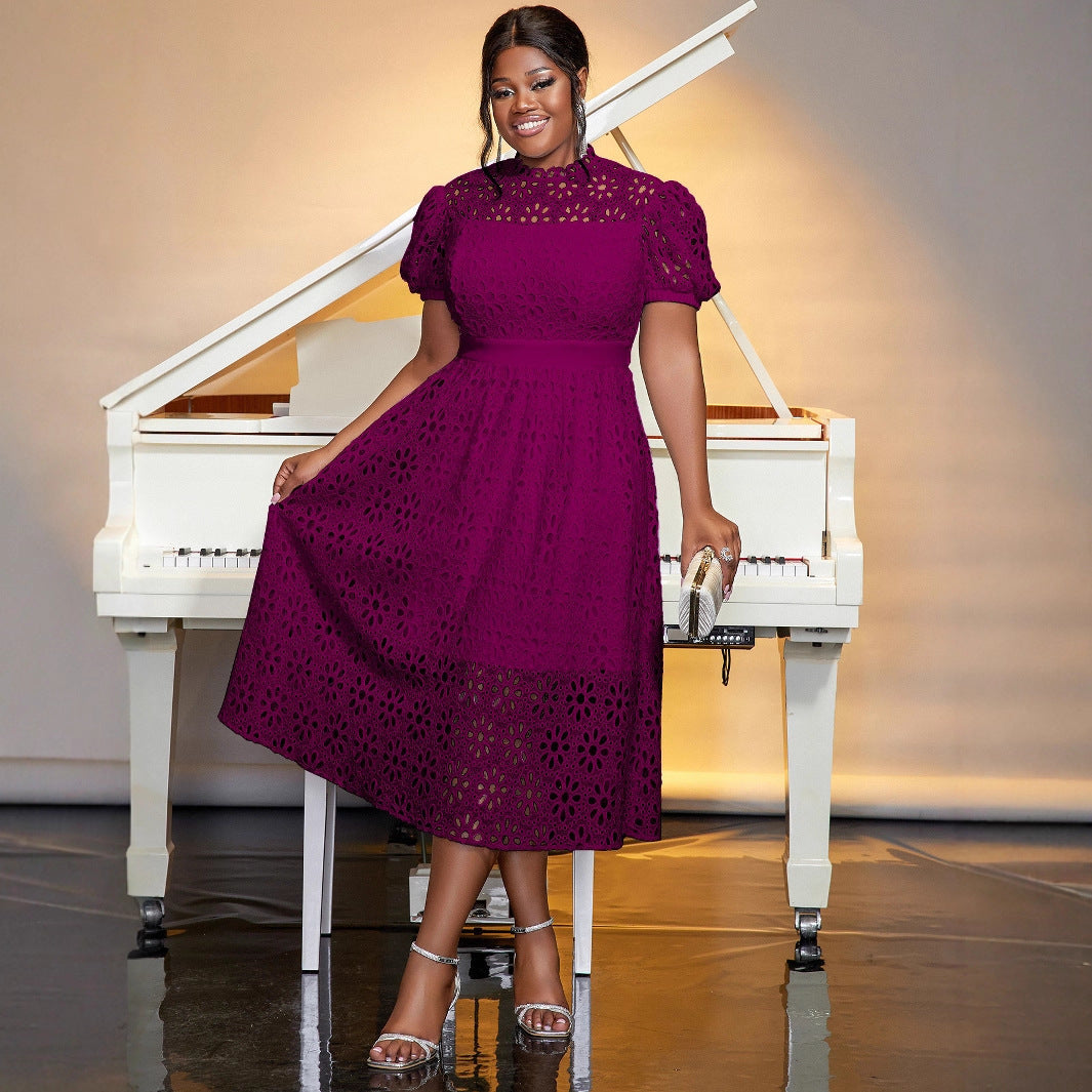 Puff Sleeve Lace Banquet Holiday Dress